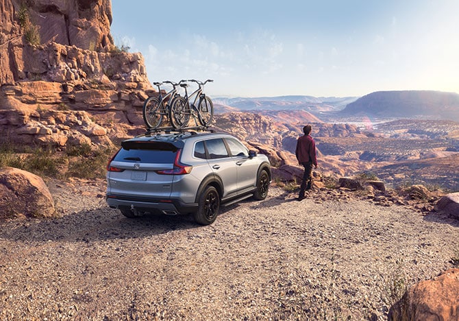 The Honda CR-V Hybrid starts with 18-inch gloss-black alloy wheels, allowing you to chew miles on your daily commute. Roof rails are standard for extra cargo space or a place to keep your kayaks safely secured. Full LED Headlights illuminate your nighttime driving. Upgrading to the available Sport Touring Hybrid unlocks the hands-free power tailgate for easy access.