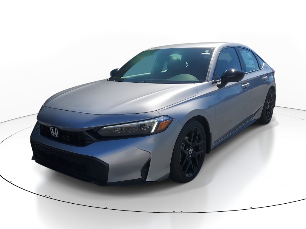 Solar Silver Metallic 2026 Honda Civic Sport FWD CVT 2.0L I4 DOHC 16V Black Artificial Leather.