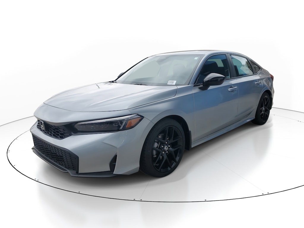 Solar Silver Metallic 2026 Honda Civic Sport FWD CVT 2.0L I4 DOHC 16V Black Artificial Leather.