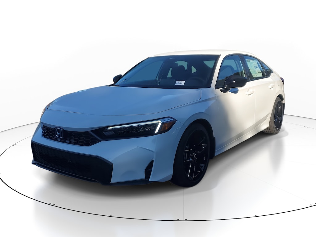 Platinum White Pearl 2026 Honda Civic Sport FWD CVT 2.0L I4 DOHC 16V Black Artificial Leather.