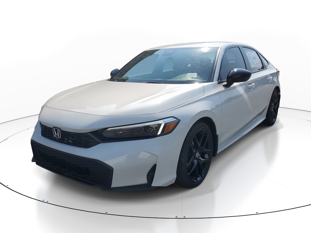 Platinum White Pearl 2026 Honda Civic Sport FWD CVT 2.0L I4 DOHC 16V Black Artificial Leather.