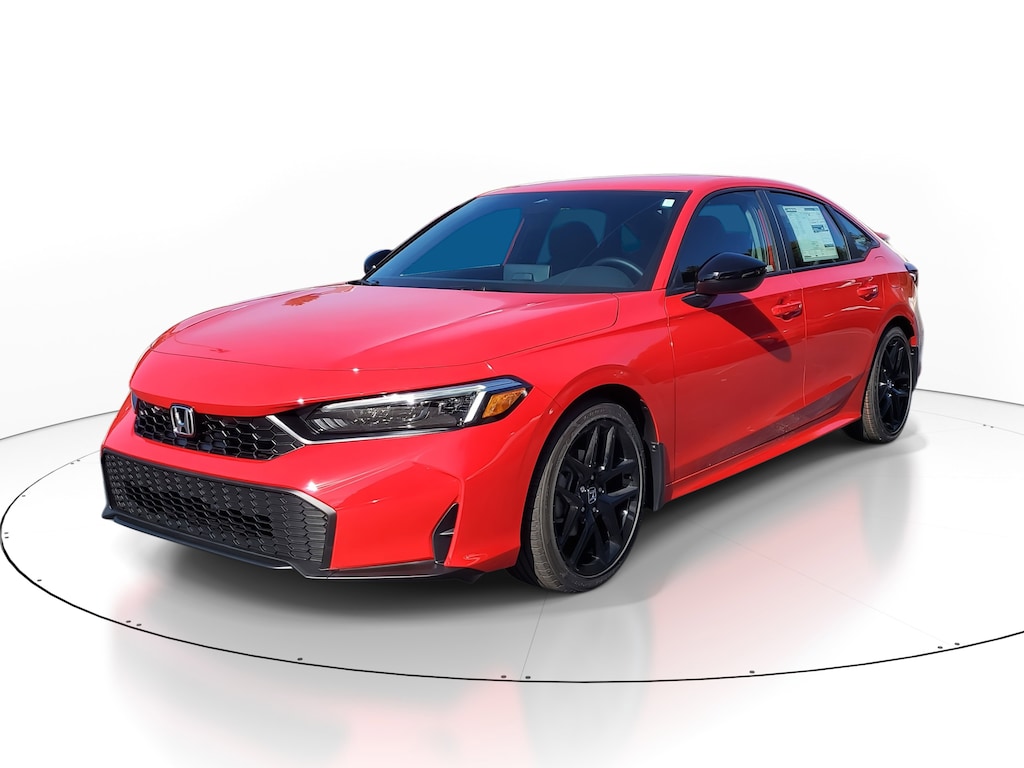 Rallye Red 2026 Honda Civic Sport FWD CVT 2.0L I4 DOHC 16V Black Artificial Leather.