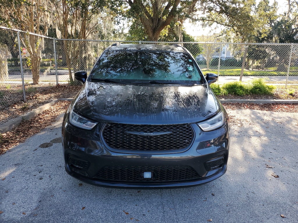 This Vehicle comes equipped with: Inflatable Spare Tire Kit w/Sealant (Vacuum Delete), Quick Order Package 27W, S Appearance Package (1st Row Soft Seatback, Anodized Ice Cave Accents, Anodized Ink Badging, Black Day Light Opening Moldings, Cloth Bucket Seats w/S Logo, Leather Wrapped Steering Wheel, Piano Black Interior Accents, Premium Fascia Upper/Lower Grille w/Black Surround, Premium Rear Fascia Black, S Badge, and Wheels: 18" x 7.5" S-Model Aluminum Design 2), Trailer Tow Group - 3,600 lb Rating (220 Amp Alternator, 7 & 4 Pin Trailer Tow Wiring Harness, Heavy-Duty Radiator, Hitch w/2" Receiver, and Trailer Sway Damping), 3.25 Axle Ratio, 3rd row seats: split-bench, 4-Wheel Disc Brakes, 6 Speakers, ABS brakes, Air Conditioning, Alloy wheels, AM/FM radio: SiriusXM, Apple CarPlay/Android Auto, Auto-dimming Rear-View mirror, Automatic temperature control, Black Seats, Brake assist, Bumpers: body-color, Cloth Bucket Seats, Compass, Delay-off headlights, Driver door bin, Driver vanity mirror, Driver's Seat Mounted Armrest, Dual front impact airbags, Dual front side impact airbags, Electronic Stability Control, Four wheel independent suspension, Front anti-roll bar, Front Bucket Seats, Front dual zone A/C, Front fog lights, Front reading lights, Fully automatic headlights, Garage door transmitter: HomeLink, Heated door mirrors, Illuminated entry, Instrument Panel Anodized Silver Bezel, Knee airbag, Low tire pressure warning, MOPAR Single Overhead DVD System, Occupant sensing airbag, Outside temperature display, Overhead airbag, Overhead console, Panic alarm, ParkView Rear Back-Up Camera, Passenger door bin, Passenger seat mounted armrest, Passenger vanity mirror, Power door mirrors, Power driver seat, Power Liftgate, Power steering, Power windows, Radio data system, Radio: Uconnect 5 w/10.1" Display, Rain sensing wipers, Rear air conditioning, Rear reading lights, Rear window defroster, Rear window wiper, Reclining 3rd row seat, Remote keyless entry, Roof rack, Security system, Speed control, Split folding rear seat, Spoiler, Steering wheel mounted audio controls, Tachometer, Telescoping steering wheel, Tilt steering wheel, Touring Suspension, Traction control, Trip computer, Turn signal indicator mirrors, Variably intermittent wipers, Voltmeter, and Wheels: 17" x 7.0" Fully Painted Aluminum.