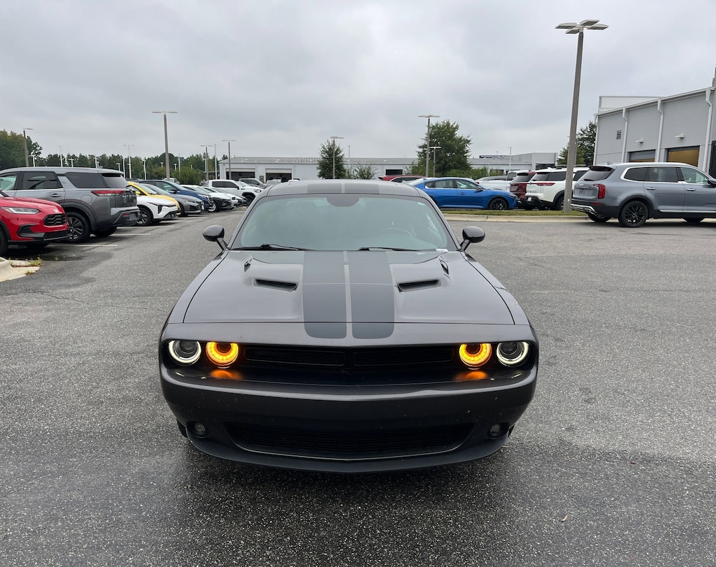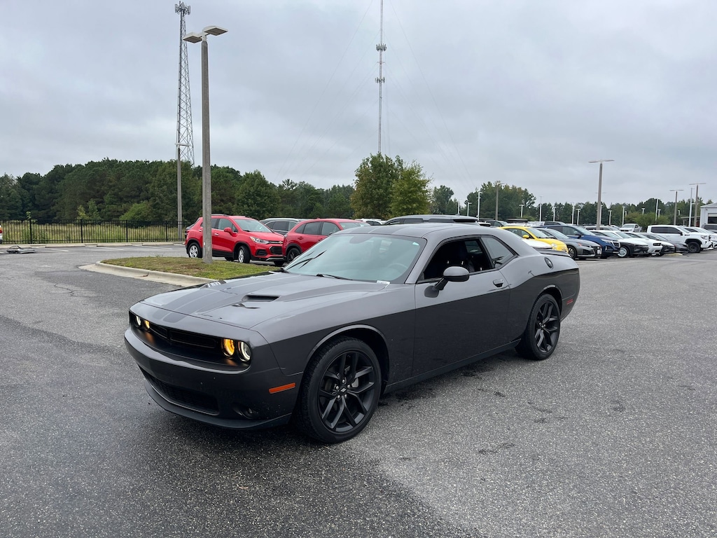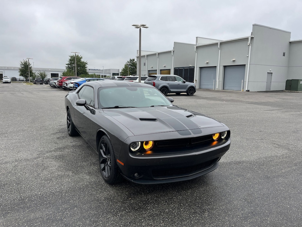 This vehicle comes equipped with : Blacktop Package (Black Fuel Filler Door, Black Grille w/Bezel, Challenger Blacktop Grille Badge, Gloss Black I/P Cluster Trim Rings, Leather Performance Steering Wheel, Rear Black Spoiler, Satin Black Dodge Tail Lamp Badge, and Wheels: 20" x 8.0" Black Noise Painted), Quick Order Package 2EA, 4-Wheel Disc Brakes, 6 Speakers, ABS brakes, Air Conditioning, Alloy wheels, AM/FM radio, Anti-whiplash front head restraints, Apple CarPlay, Apple CarPlay/Android Auto, Auto-dimming Rear-View mirror, Automatic temperature control, Blacktop Stripe, Brake assist, Bumpers: body-color, Compass, Compass Gauge, Delay-off headlights, Driver door bin, Driver vanity mirror, Dual front impact airbags, Dual front side impact airbags, Electronic Stability Control, Four wheel independent suspension, Front anti-roll bar, Front Bucket Seats, Front Center Armrest, Front dual zone A/C, Front reading lights, Fully automatic headlights, Google Android Auto, GPS Antenna Input, Heated door mirrors, Houndstooth Cloth Sport Seat, Illuminated entry, Integrated Center Stack Radio, Integrated Voice Command w/Bluetooth, Leather Shift Knob, Low tire pressure warning, Media Hub (2 USB, AUX), Outside temperature display, Overhead airbag, Overhead console, Panic alarm, ParkView Rear Back-Up Camera, Passenger door bin, Passenger vanity mirror, Power door mirrors, Power driver seat, Power steering, Power Sunroof, Power windows, Radio data system, Radio: Uconnect 4 w/7" Display, Rear anti-roll bar, Rear reading lights, Rear seat center armrest, Rear window defroster, Remote keyless entry, Security system, Speed control, Speed-sensing steering, Split folding rear seat, Spoiler, Steering wheel mounted audio controls, Tachometer, Telescoping steering wheel, Tilt steering wheel, Traction control, Trip computer, USB Host Flip, Variably intermittent wipers, and Wheels: 18" x 7.5" Cast Aluminum.