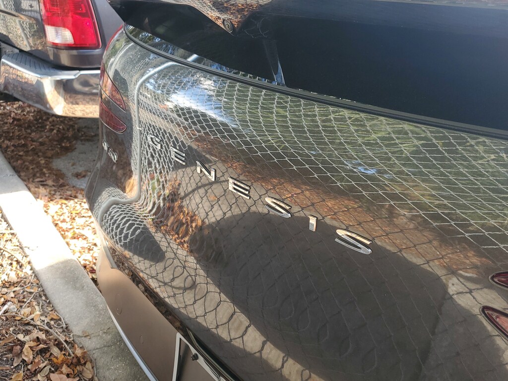 This Vehicle comes equipped with: Option Group 01, 10.650 Axle Ratio, 17 Speakers, 4-Wheel Disc Brakes, ABS brakes, Adaptive suspension, Air Conditioning, Alloy wheels, AM/FM radio: SiriusXM, Android Auto & Apple CarPlay, Anti-whiplash front head restraints, Auto High-beam Headlights, Auto tilt-away steering wheel, Auto-dimming door mirrors, Auto-dimming Rear-View mirror, Automatic temperature control, Brake assist, Bumpers: body-color, Cargo Net, Delay-off headlights, Driver door bin, Driver vanity mirror, Dual front impact airbags, Dual front side impact airbags, Electronic Stability Control, Emergency communication system: Genesis Connected Services, Exterior Parking Camera Rear, First Aid Kit, Four wheel independent suspension, Front anti-roll bar, Front Bucket Seats, Front Center Armrest, Front dual zone A/C, Front reading lights, Fully automatic headlights, Garage door transmitter: HomeLink, Heads-Up Display, Heated & Ventilated Front Seats w/Memory, Heated door mirrors, Heated front seats, Heated rear seats, Heated steering wheel, Illuminated Door Scuff Plates, Illuminated entry, Knee airbag, Leather steering wheel, Low tire pressure warning, Memory seat, Nappa Leather Seating Surfaces, Navigation System, Occupant sensing airbag, Outside temperature display, Overhead airbag, Overhead console, Panic alarm, Passenger door bin, Passenger vanity mirror, Power door mirrors, Power driver seat, Power Liftgate, Power passenger seat, Power steering, Power windows, Radio: AM/FM/HD Bang & Olufsen Premium Audio System, Rain sensing wipers, Rear anti-roll bar, Rear reading lights, Rear seat center armrest, Rear side impact airbag, Rear window defroster, Remote keyless entry, Reversible Cargo Tray, Security system, Speed control, Speed-sensing steering, Split folding rear seat, Spoiler, Steering wheel memory, Steering wheel mounted audio controls, Telescoping steering wheel, Tilt steering wheel, Traction control, Trip computer, Turn signal indicator mirrors, Variably intermittent wipers, Ventilated front seats, and Wheels: 21" x 8.5J Alloy.