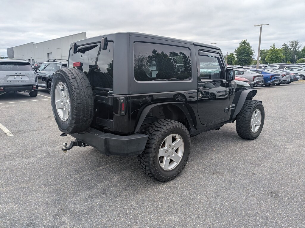 This vehicle comes equipped with : Connectivity Group (Remote USB Port, Tire Pressure Monitoring Display, Uconnect Voice Command w/Bluetooth, and Vehicle Information Center), Power Convenience Group (Auto-Dimming Mirror w/Reading Lamp, Front 1-Touch Down Power Windows, Power Heated Mirrors, Power Locks, Remote Keyless Entry, and Security Alarm), Quick Order Package 24S (17" x 7.5" Aluminum Wheels, Air Conditioning, Chrome/Leather Wrapped Shift Knob, and Leather Wrapped Steering Wheel), 1-Year SIRIUSXM Radio Service, 16" x 7.0" Luxury Styled Steel Wheels, 3.21 Rear Axle Ratio, 4-Wheel Disc Brakes, 6 Speakers, ABS brakes, AM/FM radio, Black 3-Piece Hard Top, Brake assist, CD player, Cloth Bucket Seats, Compass, Deep Tint Sunscreen Windows, Delete Sunrider Soft Top, Driver door bin, Driver vanity mirror, Dual front impact airbags, Electronic Stability Control, Freedom Panel Storage Bag, Front anti-roll bar, Front Bucket Seats, Front Center Armrest w/Storage, Front fog lights, Integrated roll-over protection, Low tire pressure warning, Normal Duty Suspension, Occupant sensing airbag, Outside temperature display, Passenger door bin, Passenger vanity mirror, Power steering, Radio: Uconnect 130 AM/FM/CD/MP3, Rear anti-roll bar, Rear Window Defroster, Rear Window Wiper/Washer, SIRIUS Satellite Radio, Speed control, Steering wheel mounted audio controls, Sunrider Soft Top, Tachometer, Tilt steering wheel, Tinted Rear Quarter & Liftgate Windows, Traction control, Trip computer, and Variably intermittent wipers.