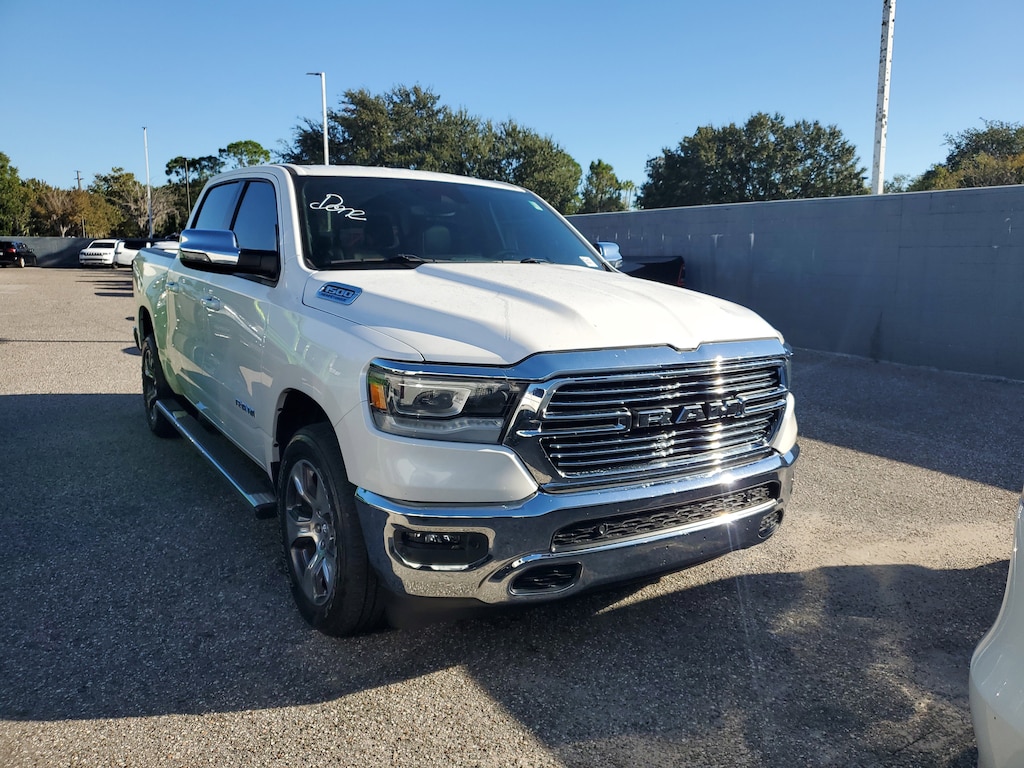 This Vehicle comes equipped with: Laramie Level 1 Equipment Group (2nd Row In Floor Storage Bins, 4G LTE Wi-Fi Hot Spot, Apple CarPlay, Auto High Beam Headlamp Control, Blind Spot & Cross Path Detection, Connected Travel & Traffic Services, Connectivity - US/Canada, Electric Shift-On-Demand Transfer Case, Foam Bottle Insert (Door Trim Panel), For Details, Visit DriveUconnect.com, For More Info, Call 800-643-2112, Front Door Accent Lighting, Front LED Fog Lamps, Global Telematics Box Module (TBM), Google Android Auto, GPS Navigation, HD Radio, Heated Second Row Seats, Integrated Voice Command w/Bluetooth, LED Reflector Headlamps, Power Adjustable Pedals w/Memory, Radio: Uconnect 5 Nav w/12.0" Display, Rain Sensitive Windshield Wipers, Rear Door Accent Lighting, Rear Power Sliding Window, Rear Window Defroster, Remote Tailgate Release, SiriusXM Radio Service, SiriusXM w/360L, and USB Host Flip), Quick Order Package 27H Laramie, 10 Speakers, 3 Rear Seat Head Restraints, 3.21 Rear Axle Ratio, 4 Way Front Headrests, 4-Wheel Disc Brakes, 48V Belt Starter Generator, ABS brakes, Air Conditioning, Alloy wheels, AM/FM radio: SiriusXM with 360L, Anti-Spin Differential Rear Axle, Apple CarPlay/Android Auto, Audio memory, Auto-dimming door mirrors, Auto-Dimming Exterior Driver Mirror, Auto-dimming Rear-View mirror, Automatic temperature control, Brake assist, Bumpers: chrome, Chrome Exterior Mirrors, Class IV Receiver Hitch, Compass, Convex Wide-Angle Exterior Mirror Insert, Delay-off headlights, Driver door bin, Driver Seat Memory, Driver vanity mirror, Dual front impact airbags, Dual front side impact airbags, Electronic Stability Control, Exterior Mirrors Courtesy Lamps, Exterior Mirrors w/Heating Element, Exterior Mirrors w/Memory, Exterior Mirrors w/Supplemental Signals, Front anti-roll bar, Front Center Armrest w/Storage, Front dual zone A/C, Front fog lights, Front reading lights, Front Seat Back Map Pockets, Front wheel independent suspension, Fully automatic headlights, Garage door transmitter, Heated door mirrors, Heated Front Seats, Heated front seats, Heated Steering Wheel, Heated steering wheel, Illuminated entry, Leather steering wheel, Leather Trim 40/20/40 Bench Seat, Low tire pressure warning, Memory seat, MOPAR Front & Rear Rubber Floor Mats, Navigation System, Occupant sensing airbag, Outside temperature display, Overhead airbag, Overhead console, Panic alarm, ParkSense Front/Rear Park Assist w/Stop (DISC), ParkView Rear Back-Up Camera, Passenger door bin, Passenger vanity mirror, Power 2-Way Driver Lumbar Adjust, Power 2-Way Passenger Lumbar Adjust, Power 8-Way Driver & Passenger Seats, Power door mirrors, Power driver seat, Power passenger seat, Power steering, Power windows, Power-Folding Mirrors, Radio data system, Radio: Uconnect 5 Nav w/8.4" Display, RAM Grille Badge - Chrome, Rear 60/40 Folding Seat, Rear anti-roll bar, Rear seat center armrest, Rear step bumper, Remote keyless entry, Security system, Speed control, Split folding rear seat, Steering wheel mounted audio controls, Tachometer, Telescoping steering wheel, Tilt steering wheel, Traction control, Trailer Brake Control, Trip computer, Turn signal indicator mirrors, Variably intermittent wipers, Ventilated Front Seats, Ventilated front seats, Voltmeter, Wheels: 18" x 8" Aluminum Base Painted, and Wheels: 20" x 9" Premium Paint/PolisheD.