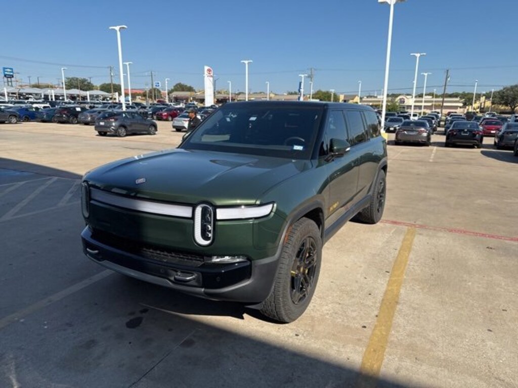This vehicle comes equipped with: 19 Speakers, 3rd row seats: bench, 4-Wheel Disc Brakes, 7 Seat Interior, ABS brakes, Adaptive suspension, Air Conditioning, Alloy wheels, Audio memory, Auto High-beam Headlights, Auto tilt-away steering wheel, Auto-dimming door mirrors, Auto-dimming Rear-View mirror, Auto-leveling suspension, Automatic temperature control, Brake assist, Delay-off headlights, Driver door bin, Driver vanity mirror, Dual front impact airbags, Dual front side impact airbags, Electronic Stability Control, Emergency communication system, Exterior Parking Camera Rear, Four wheel independent suspension, Front anti-roll bar, Front Bucket Seats, Front Center Armrest, Front dual zone A/C, Front fog lights, Front reading lights, Fully automatic headlights, Heated & Ventilated Front Bucket Seats, Heated door mirrors, Heated front seats, Heated steering wheel, Illuminated entry, Knee airbag, Low tire pressure warning, Memory seat, Navigation System, Occupant sensing airbag, Outside temperature display, Overhead airbag, Panic alarm, Passenger door bin, Passenger vanity mirror, Perf Vegan Leather Seat Trim w/Patterned Stitching, Power door mirrors, Power driver seat, Power passenger seat, Power steering, Power windows, Radio: New Rivian Elevation Audio, Rain sensing wipers, Rear air conditioning, Rear anti-roll bar, Rear audio controls, Rear dual zone A/C, Rear fog lights, Rear reading lights, Rear seat center armrest, Rear window defroster, Rear window wiper, Remote keyless entry, Security system, Speed control, Speed-sensing steering, Split folding rear seat, Steering wheel memory, Steering wheel mounted audio controls, Telescoping steering wheel, Tilt steering wheel, Traction control, Trip computer, Turn signal indicator mirrors, Variably intermittent wipers, Ventilated front seats, and Wheels: 21 Road Machined Aluminum.