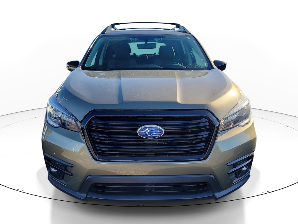 This Vehicle is nicely equipped with the following features: PMR + Navi + TC (Cargo Area Cover, Dual Glass Panoramic Power Moonroof, and Radio: Subaru STARLINK 8.0 Multimedia Nav System), 3rd row seats: bench, 4-Wheel Disc Brakes, 6 Speakers, ABS brakes, Aero Crossbar Set, Air Conditioning, All-Weather Floor Liners, Alloy wheels, AM/FM radio: SiriusXM, Auto High-beam Headlights, Auto-Dimming Mirror w/Compass & HomeLink, Auto-dimming Rear-View mirror, Automatic temperature control, Axle Ratio: 4.44, Brake assist, Bumpers: body-color, Cargo Tray, CD player, Compass, Cup Holder Insert, Delay-off headlights, Driver door bin, Driver vanity mirror, Dual front impact airbags, Dual front side impact airbags, Electronic Stability Control, Emergency communication system: STARLINK Safety and Security (Subscription Required), Exterior Parking Camera Rear, Four wheel independent suspension, Front anti-roll bar, Front Bucket Seats, Front Center Armrest, Front dual zone A/C, Front fog lights, Front reading lights, Fully automatic headlights, Garage door transmitter: HomeLink, Heated door mirrors, Heated Front Bucket Seats, Heated front seats, Heated steering wheel, Illuminated entry, Knee airbag, Low tire pressure warning, Map & Reading Lights LED Upgrade - 6 Bulb Kit, Occupant sensing airbag, Outside temperature display, Overhead airbag, Overhead console, Panic alarm, Passenger door bin, Passenger vanity mirror, Power door mirrors, Power driver seat, Power Liftgate, Power steering, Power windows, Radio data system, Radio: Subaru STARLINK 8.0 Multimedia Plus System, Rear air conditioning, Rear anti-roll bar, Rear reading lights, Rear window defroster, Rear window wiper, Reclining 3rd row seat, Remote keyless entry, Security system, Speed control, Split folding rear seat, Spoiler, STARLINK/Apple CarPlay/Android Auto, StarTex Upholstery, Steering wheel mounted audio controls, Tachometer, Telescoping steering wheel, Tilt steering wheel, Traction control, Trip computer, Variably intermittent wipers, and Wheels: 20 x 7.5 J Black Finish Alloy. 20/26 City/Highway MPG